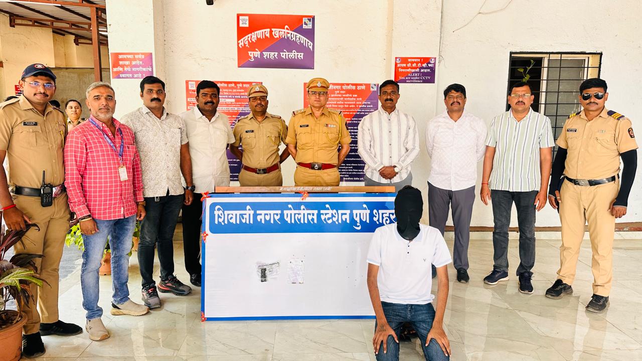 पुणे, दि.१२ :- पुणे शिवाजीनगर रेल्वे स्टेशन परिसरात गावठी पिस्तुल बाळगणाऱ्या एका सराईत गुन्हेगाराला शिवाजीनगर पोलिसांनी सापळा रचून अटक केली. आरोपीकडून गावठी पिस्तुल आणि दोन जिवंत काडतुसे जप्त करण्यात आली आहेत.